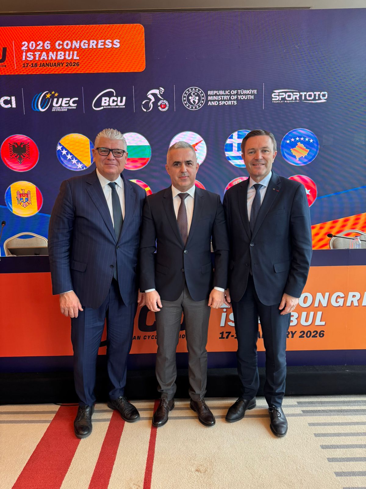 Kongres Balkanske biciklističke unije održan je 18. januara 2026. u Istanbulu (Turska). Kongresu je prisustvovala i delegacija Crne Gore u sastavu predsjednik Biciklističkog saveza Crne Gore Dejan Popović i generalna sekretarka Vanja Banović.